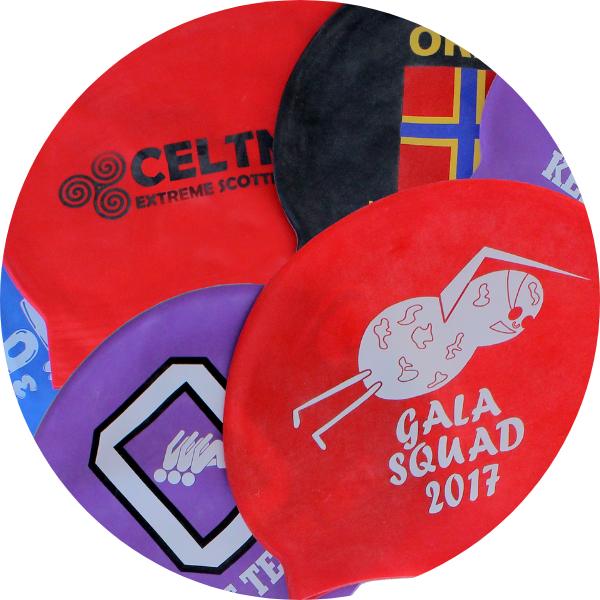 Order custom silicone, latex or polyester swim caps for your team, club or event.