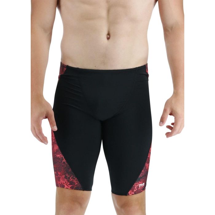 This TYR jammer stop above the knee and feature both a compressive fit and adjustable drawcord waist. A championship cut and bold print amplify the suit's highly technical appearance.